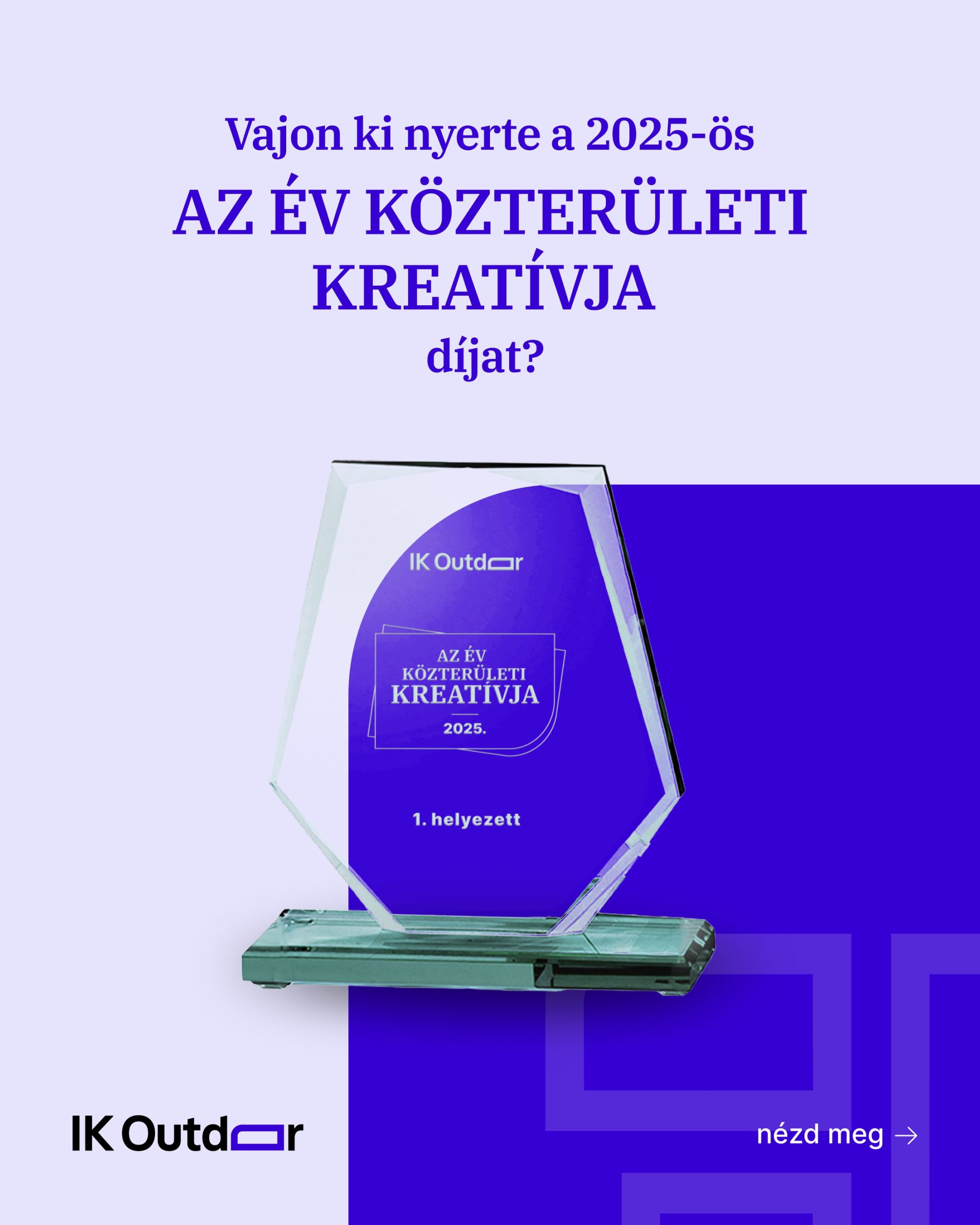 A 2025-ös „AZ ÉV KÖZTERÜLETI KREATÍVJA” díj nyertese Hiszek abban, hogy a jó OOH kampány két lábon áll. Az egyik a média tervezés: forgalmas helyszín, jó szög, megfelelő városi kontextus, pontos optimalizálás. A másik a kreatív... És ezen a ponton sokszor elcsúszik a történet. A közterületi reklámoknál maga a kreatív a tartalom. A jó plakát olyan, mint egy érdekes cikk a kedvenc portálunkon. Ha meglep, ha meghökkent, ha megmosolyogtat, ha informál, ha megkívánod..., akkor működik. Ha nem, akkor viszont hiába volt tökéletes a tábla lista, hiába volt precíz a kampány lebonyolítása - az üzenet nem ér célba.